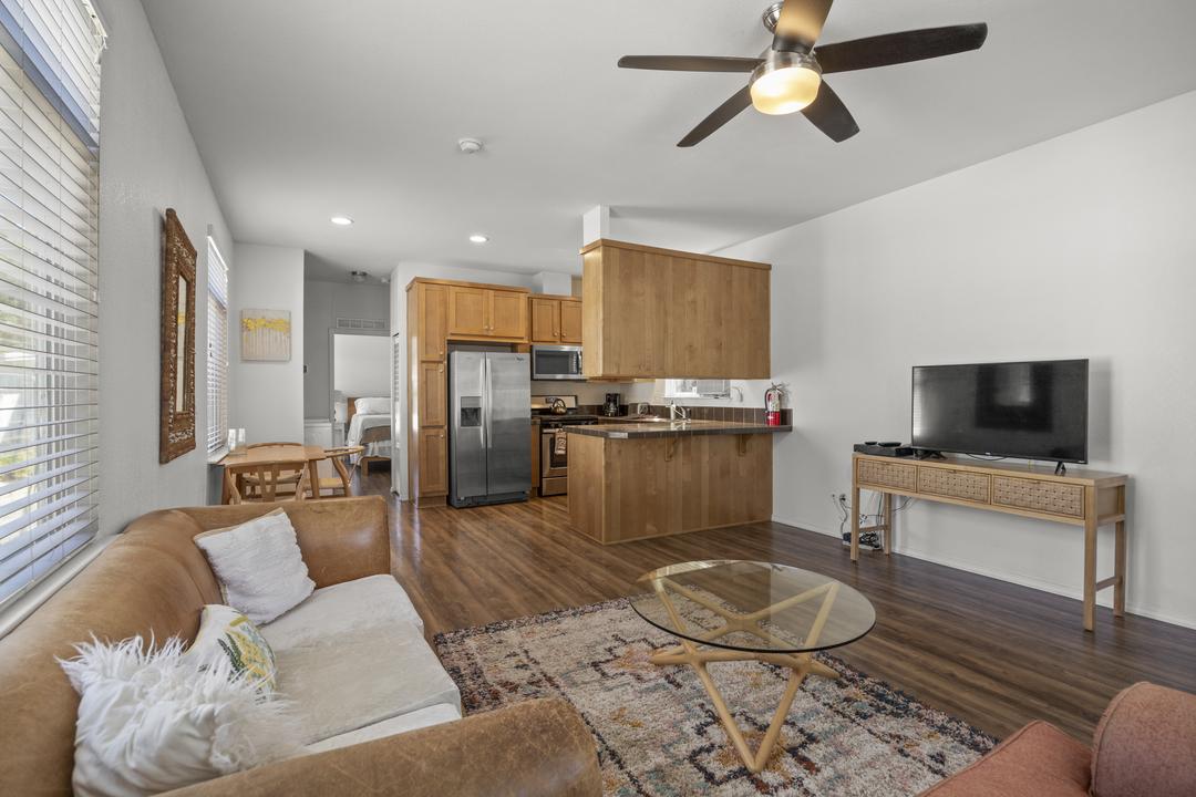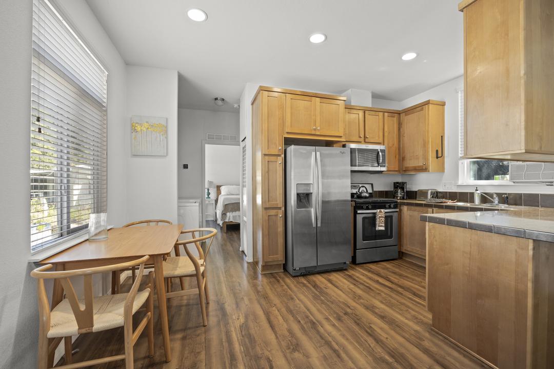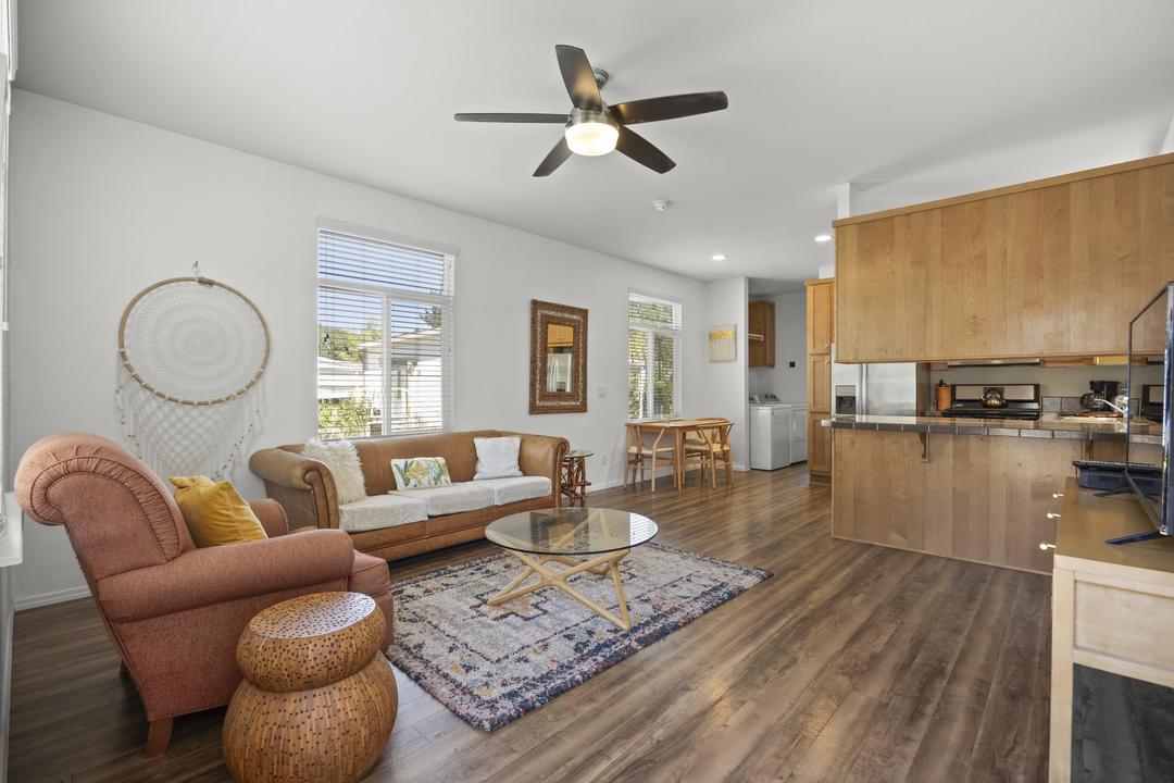 Lake Casitas mobile home park’s latest new luxury home. This modern vintage 1 bedroom + 1 bathroom manufactured home sleeps 2-4. Surrounded by oak trees, nestled by lake casitas centrally located between Ojai and Ventura. Easy access to beaches and mountain trails.